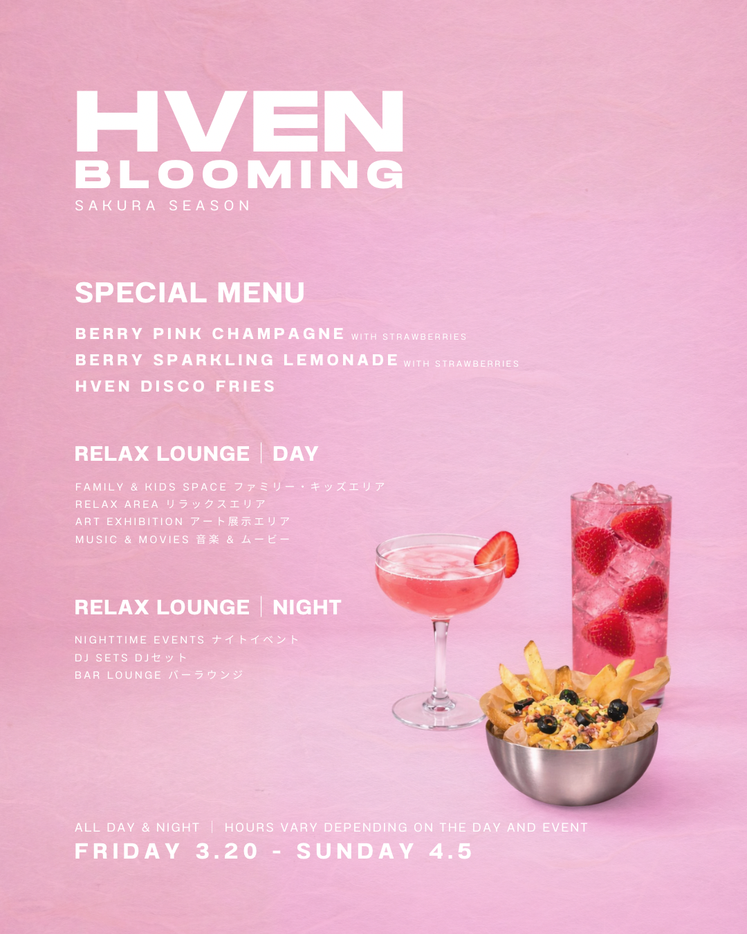 This spring, we’re celebrating Sakura season with a limited two-week program that blends seasonal flavors, family-friendly daytime comfort, and nighttime culture curated by HVEN.